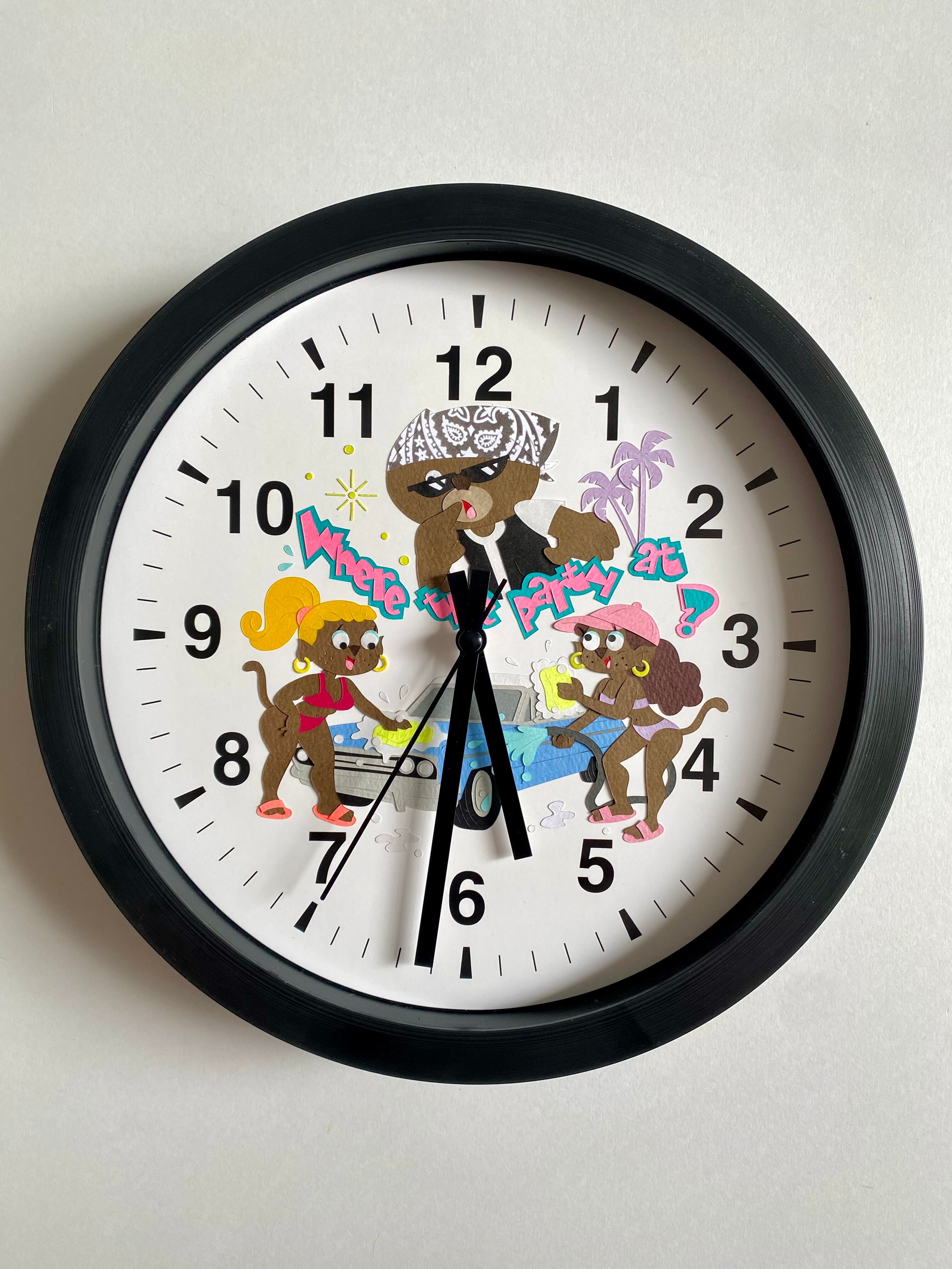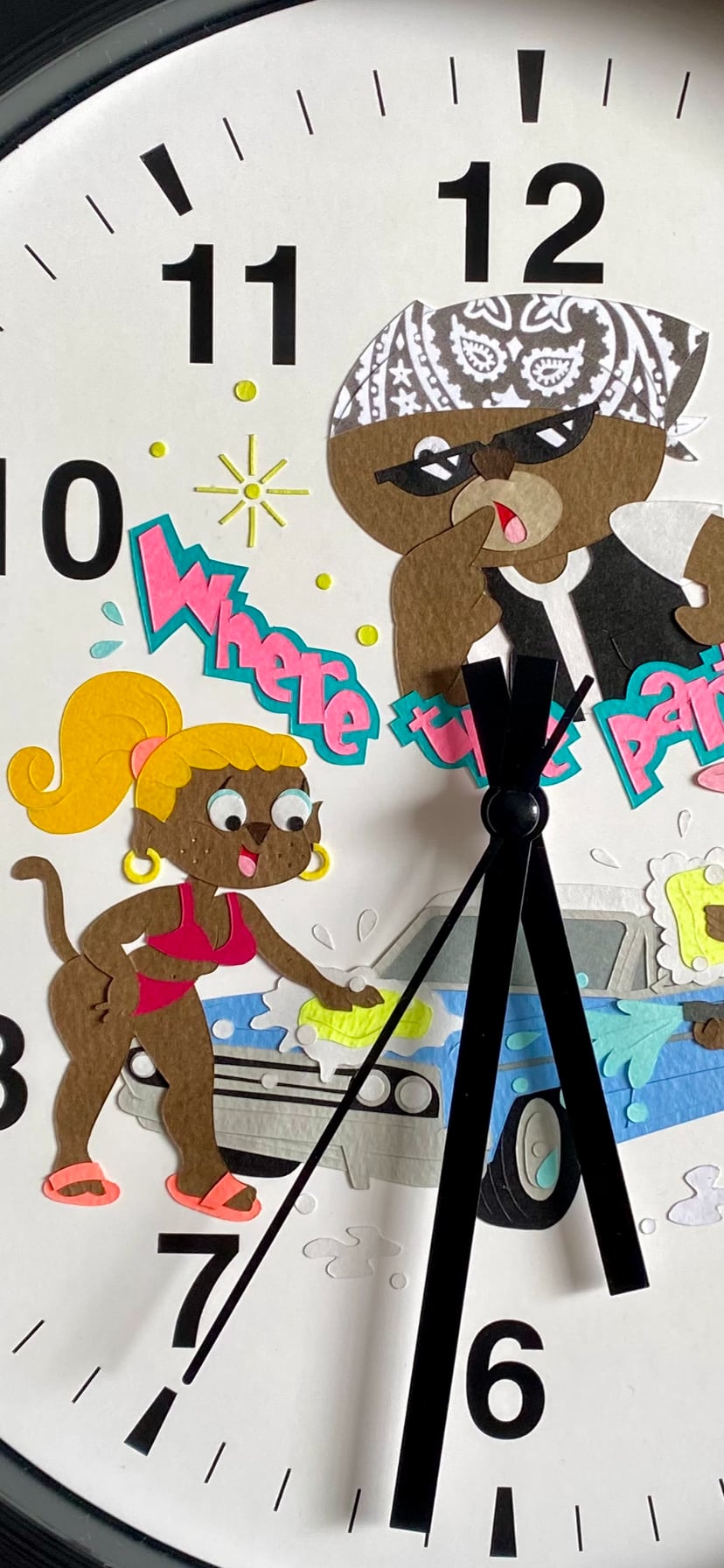 wackwack"Where the party at ?" Wall Clock Paper Cutting Art (切り絵)