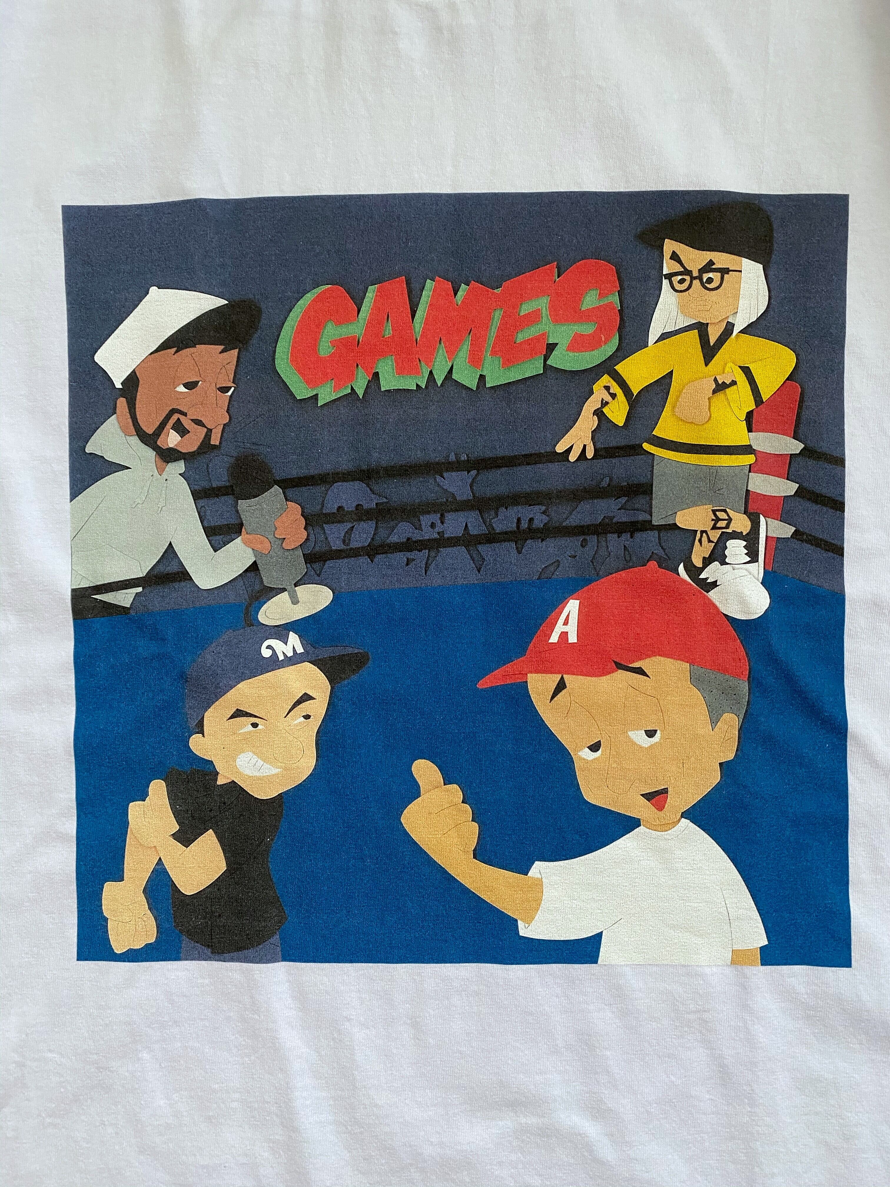 WACK WACKデザインをによる”GAMES” ( J.COLUMBUS, AKIYAHEAD, 原島 “ど真ん中” 宙芳 prod. DJ FRESH ) のリリースを記念したSPECIAL T-SHIRTS。PRO CLUBの6.5Oz T-SHIRTSを使用。FRONTにインクジェットプリントでGAMESのアートワークがプリントされています。BLACK COLORはWDwebstoreのみ、WHITE COLORはWACK WACKストアのみの販売になります。