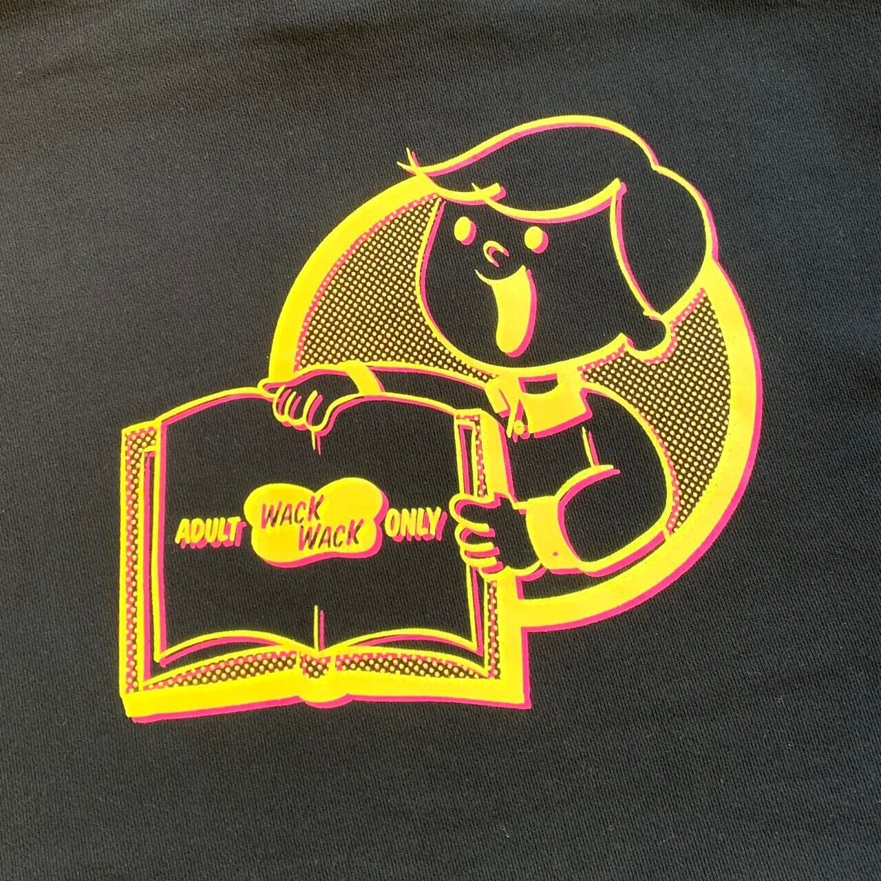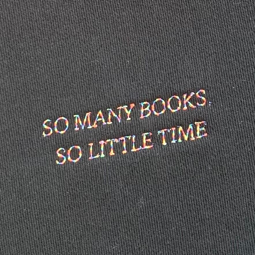 フロントにSO MANY BOOKS, SO LITTLE TIME がレインボー刺繍され、バックにwackwack氏